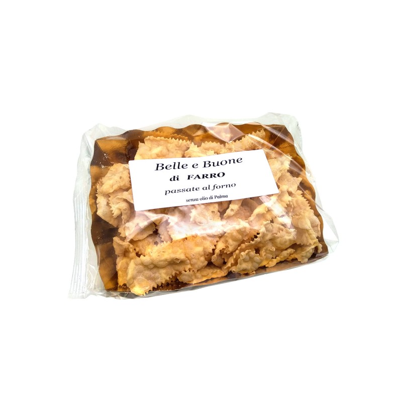 Una dolce sfoglia croccante e friabile, passata al forno e arricchita con farina 100% di FARRO e soli ingredienti naturali di altissima qualità, per regalare una fragranza e un gusto anche per i palati più esigenti.