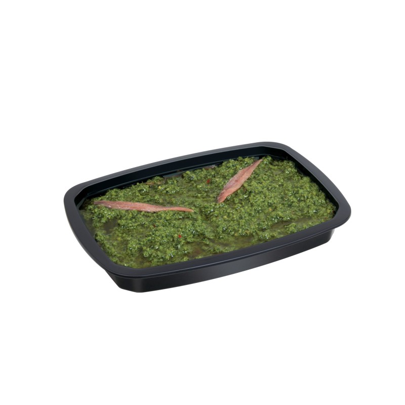 Salsa 64% (olio di semi di girasole, prezzemolo, SEDANO rapa, aceto di vino, pane pesto(farina di GRANO tenero tipo"0"acqua,lievito di birra, sale), capperi, sale, SENAPE, ketchup(concentrato di pomodoro 75%, sciroppo di glucosio-fruttosio, aceto di acquavite, zucchero, amido modificato, sale, acidificante: acido lattico, spezie), ACCIUGHE min. 36% (engraulis encrasicolus). Conservante: E200. Acidificante: E330. può contenere tracce di: SOLFITI, CROSTACEI,LATTE,SOIA,MOLLUSCHI,UOVA. Dopo l’apertura Conservare a temperatura da 0 a +4°C. Consumare preferibilmente entro 10 gg.