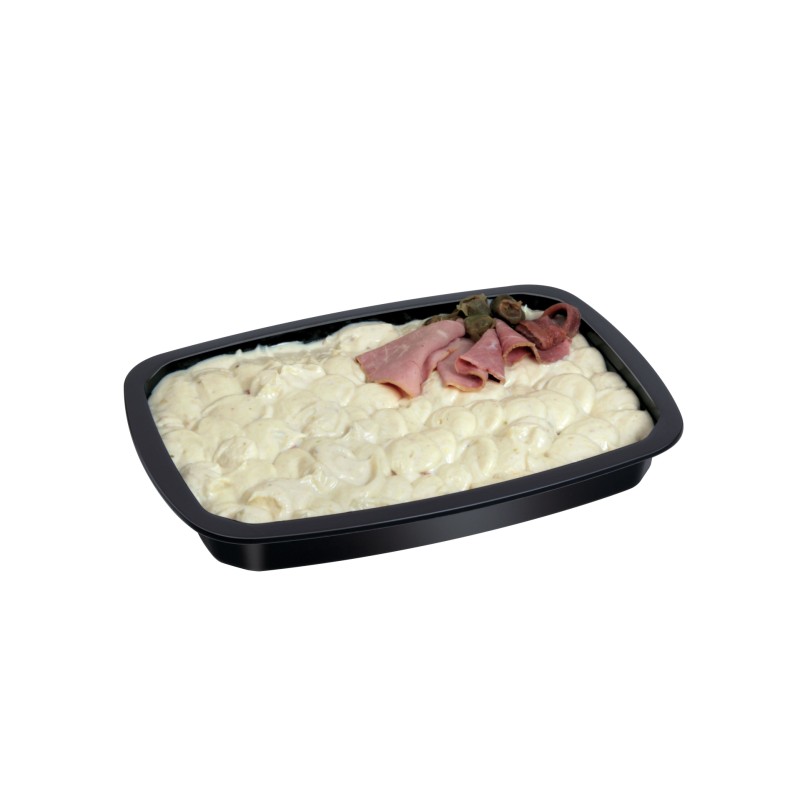 Salsa tonnata (olio di semi di girasole, UOVA pastorizzate, TONNO 8% (thunnus alalunga), aceto di vino, fibra, sale, SENAPE, ACCIUGHE (engraulis encrasicolus), capperi, girello bovino 36%. Conservanti: E250 nitrito di sodio, E200, aromi naturali (SEDANO, carote, cipolle, salvia, alloro), sale. Dopo l’apertura Conservare a temperatura da 0 a +4°C. Consumare preferibilmente entro 10 gg.