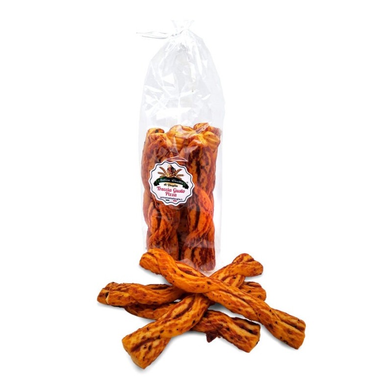 È un prodotto da forno biscottato lungo circa 10 cm. Due grissini sprofondati nel pomodoro ed intrecciate tra loro, con l’aggiunta di spezie dal gusto inimitabile