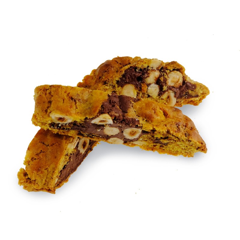 farina di grano tipo 00 crema nocciole 17% (zucchero grassi vegetali non idrogenati) oli girasoli grassi palma nocciole 12% latte scremato in polvere cacao magro in polvere emulsionante E322 lecitina di girasole aroma zucchero nocciole 13% surrogato di cioccolato fondente zucchero grassi vegetali non idrogenati palmisti palma cacao magro in polvere emulsionante lecitina di girasole E322 uova burro latte parzialmente scremato agenti livitanti difosfato disodico E450i e carbonato acido di sodio E500II amido ammonio di bicarbonato. puo contenere sesamo e senape valori nutrizionali medi per 100gr energia 2030 kj 486 kcal grassi 26g di cui acidi grassi saturi 7.9 g carboidrati 53 g di cui zuccheri 33 g fibre 3.2 g proteine 8.3 g sale 0.1 g