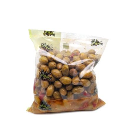 oliva acqua sale correttore di aciditè E330 peperoncino piccante pep acqua sale antiossidante E300 correttore di acidità E330 agente di resistenza E500 conservante E202 olio di semi di girasole piante aromatiche aglio conservante E200 antiossidante E300 solfiti puo contenere tracce di lupini origine grecia