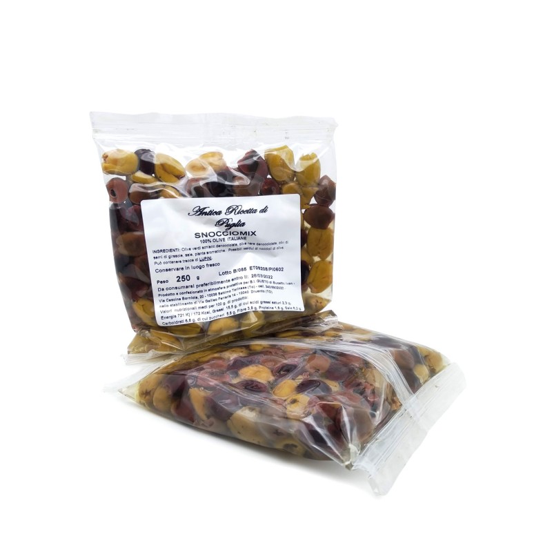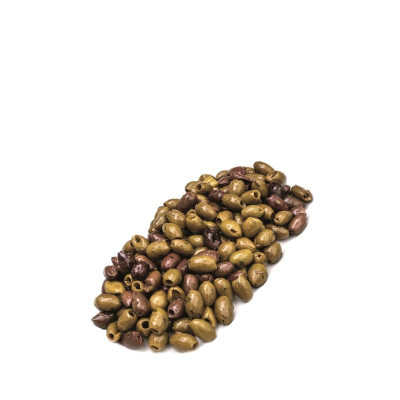 Misto di olive denocciolate e schiacciate. Condite con piante aromatiche e olio di semi di girasole confezione: 250 gr ingredienti:
