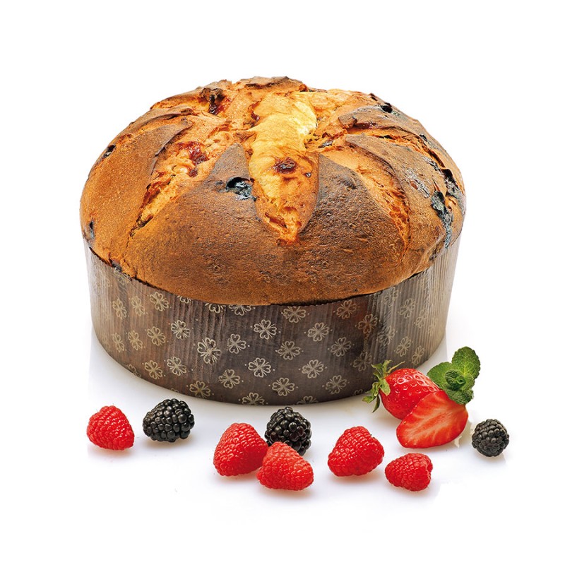 Farina di frumento, Preparato ai Frutti di Bosco 20% [zucchero, sciroppo di fruttosio, farina di riso, purea di mela, purea di frutti di bosco 2,6% (mora, fragola, lampone), succo di ribes 1,4%, burro di cacao, gelificante: pectina, acido citrico, aromi, fibra di agrumi], Burro (latte), Tuorlo d’uova fresche cat. A da allevamento a terra, Zucchero, Scorze di arancia candite in pasta (scorze di arancia, sciroppo di glucosio – fruttosio, zucchero), Lievito madre (farina di frumento, acqua), Sciroppo di zucchero invertito, Emulsionante: mono e digliceridi degli acidi grassi di origine vegetale, Sale iodato, Aroma Naturale di arancia. Può contenere frutta a guscio, arachidi, soia e senape.