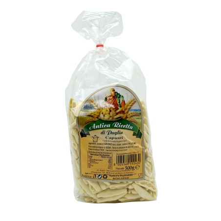 Capunti paesani (o Cavatelli) in pasta fatta a mano di semola di grano duro. Aspetto ruvido, dal sapore gustoso e tenace. Odore intenso e gradevole. Buona tenuta alla cottura.