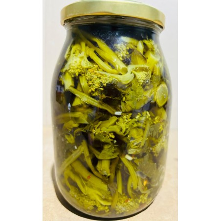 cime di rapa 64% olio di semi di girasole sale spezie (prezzemolo aglio peperoncino) in proporzione variabile acidificante E270 antiossidante E300