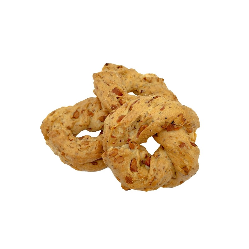 Tarallo Napoletano sugna e pepe. Prodotto da forno appartenente alla categoria del salato. Tipicamente napoletano, fatto con lievito madre e senza conservanti, leggermente riscaldato sprigiona un sapore delicato. Binomio perfetto con la birra fredda, lo rende ideale come aperitivo, ma si fa notare molto bene in una tavola bandita a buffet. Utilizzato in cucina, con il sapore della mandorla ed il gusto della sugna, è l’ingrediente ad hoc per dare il tocco di classe alla vostra ricetta confezione: 160 gr ingredienti: